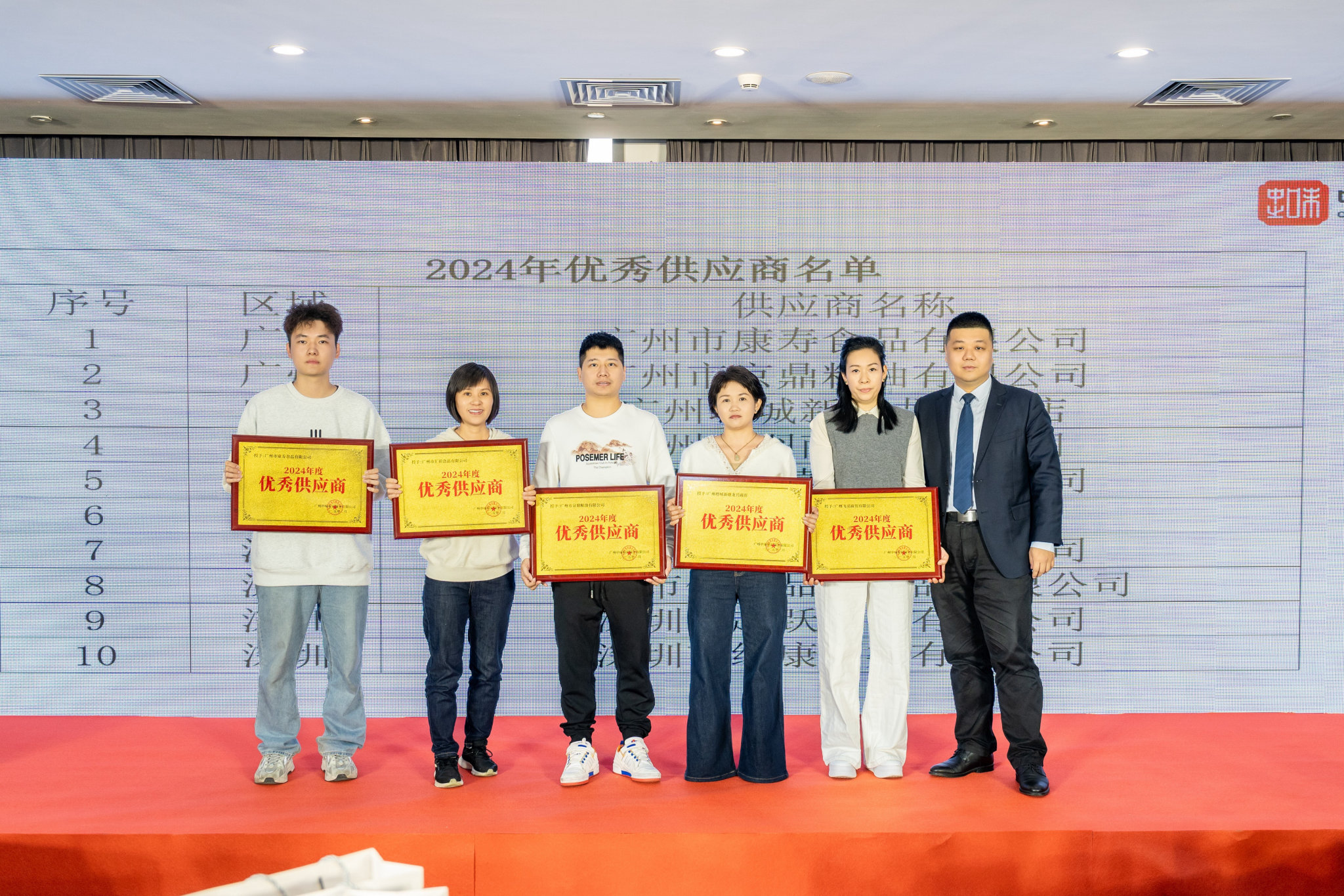 333体育副总裁李晗先生与供应链总监邱祺先生一同为2024年中合作表现优异的供应商颁发了“优秀供应商”奖项,勉励供应合作商向先进“看齐”,追求卓越。?