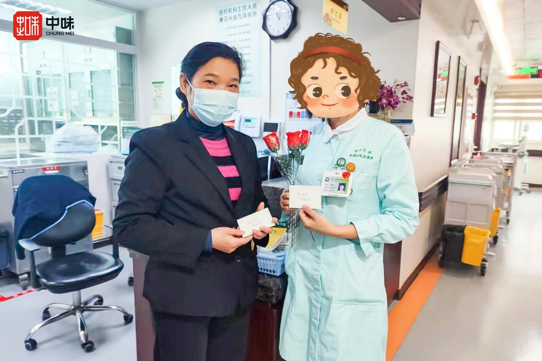 中山大学肿瘤防治中心和中山大学孙逸仙纪念医院里,333体育团队发起“让花开遍院区计划”——一枝玫瑰附一张团队伙伴手写节日卡片,跟着送餐员的脚步,将芬芳播撒到院区里各个科室、病房,为始终心怀希望、抗击病魔的女性职工、病友们送上一声温度满满的鼓励和一份长久陪伴的承诺。?