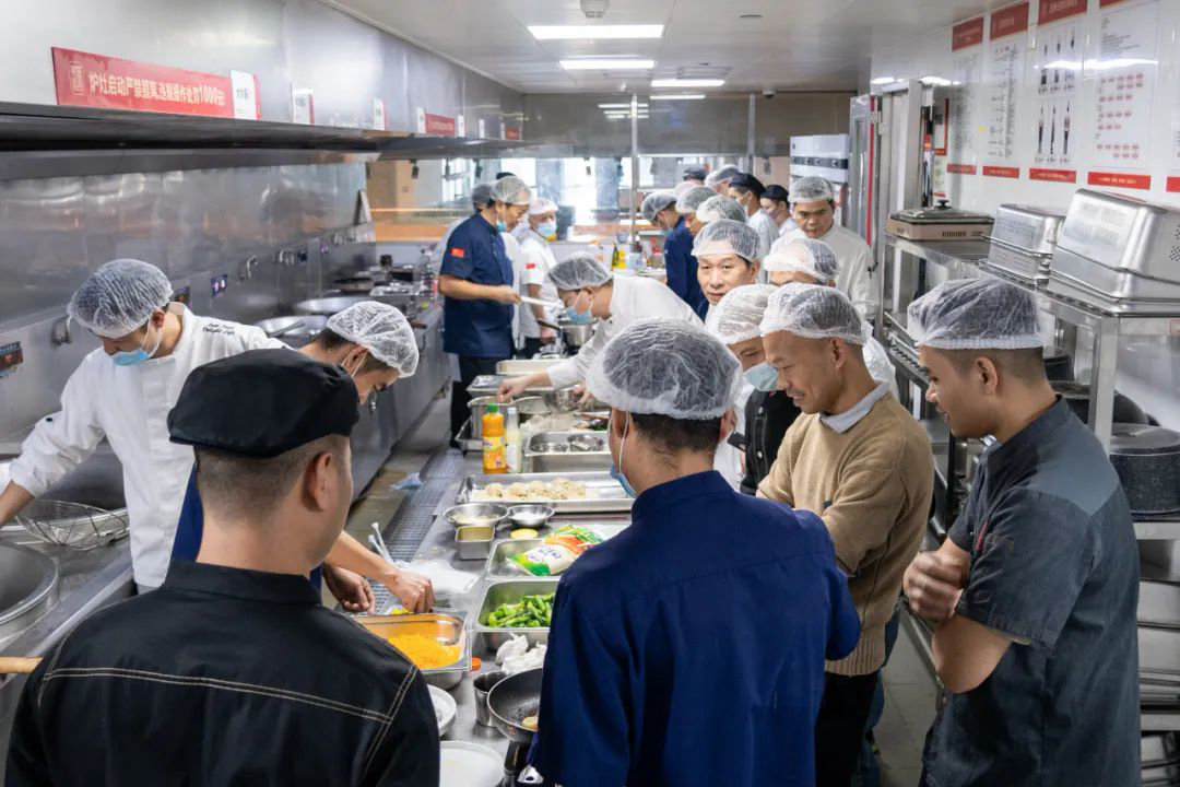 2023年11月25日,333体育本年度年末菜品品鉴会在芯大厦二楼餐厅举行,来自总部技术研发部、四大分公司以及医疗事业部的多位大厨与营运管理优秀讲师齐聚一堂,分享交流菜品结构组合与创新设计。