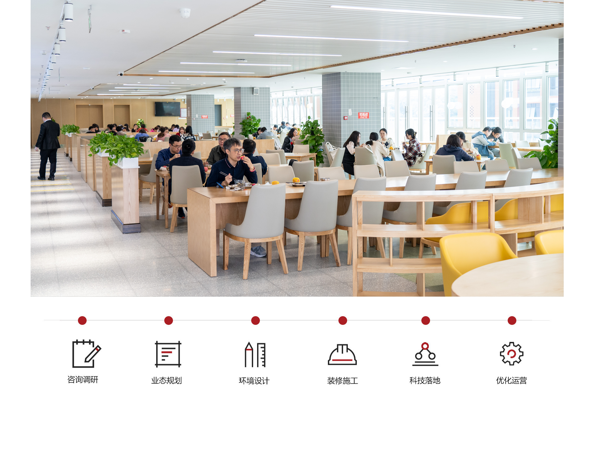 联合社餐品牌及自研孵化品牌合计100+,为客户带来美食广场式的就餐体验。